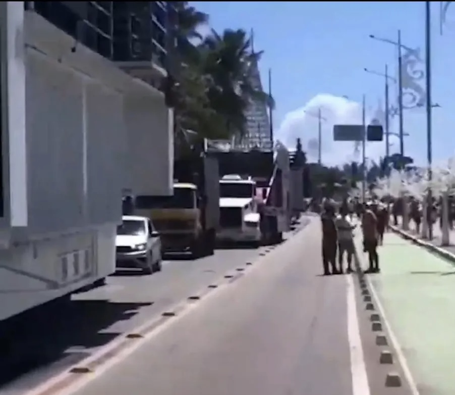 Na manhã deste domingo, os trios elétricos estavam posicionados no Marco dos Corais. Guardas Municipais e agentes de Departamento Municipal de Transporte e Trânsito (DMTT) foram até o local informando que os veículos deveriam ser retirados do local. Houve confusão.