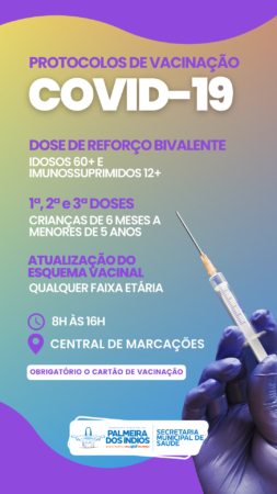 A vacinação será na Central de Marcações, de segunda a sexta, das 8h às 16h. O protocolo de vacinação contra a Covid-19 a ser seguido no município será o seguinte: