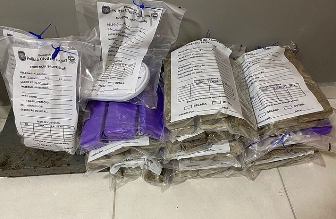 O indivíduo, que permaneceu em silêncio e não portava documentos pessoais, foi alcançado pela equipe policial. Simultaneamente, outro suspeito foi identificado dentro da casa, manuseando mais entorpecentes. Ao ser detido, ele afirmou aos agentes: “o crime irá cobrar isso daí, véi”. Além dos 43 kg de maconha em tabletes, uma balança de precisão foi apreendida no local.
