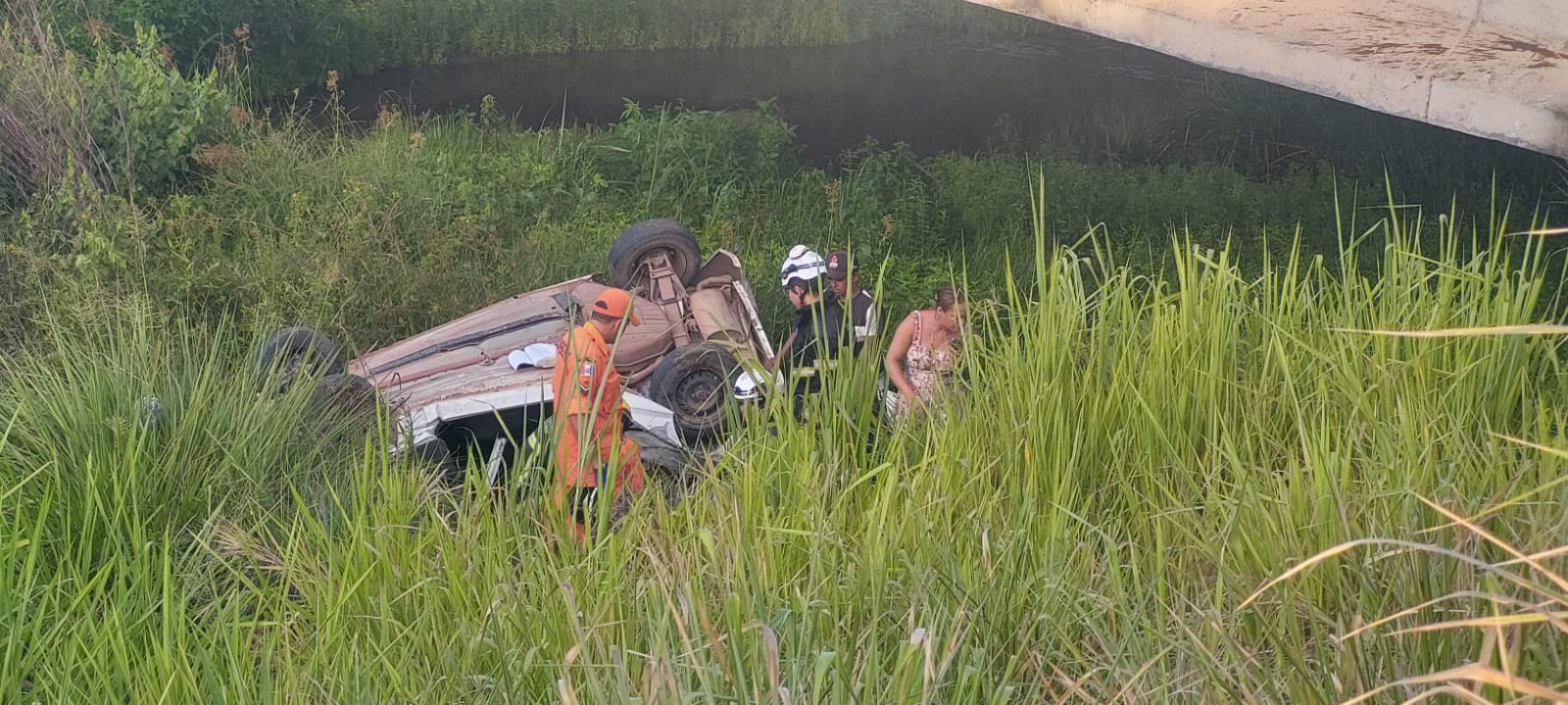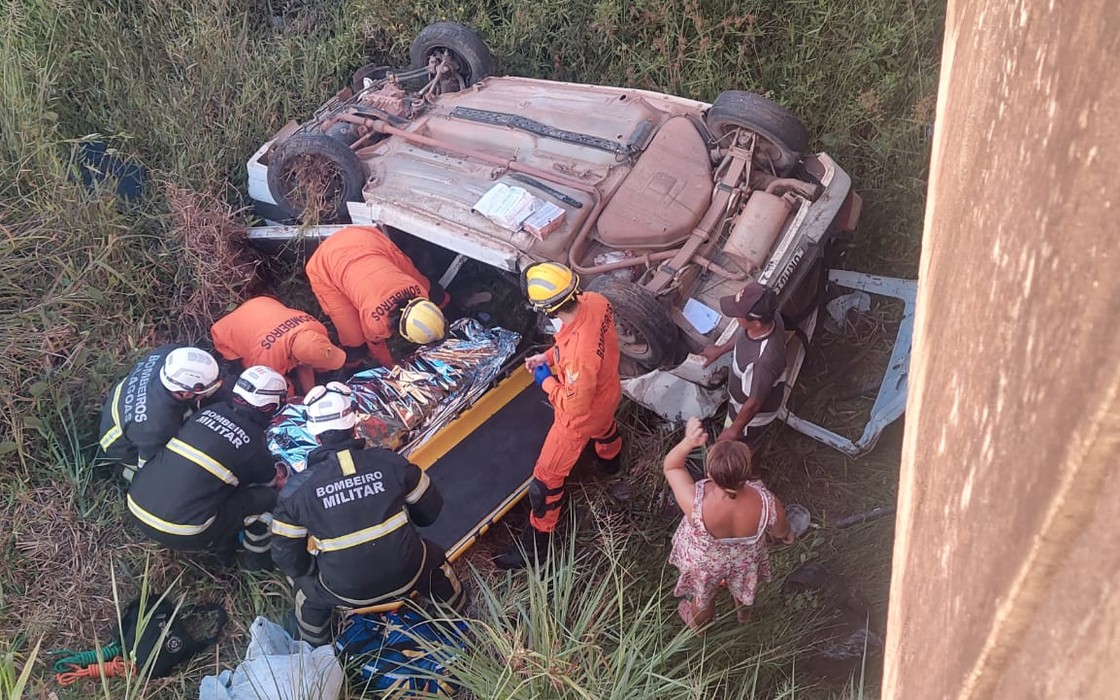 Uma mulher de 55 anos ficou ferida após o veículo em que estava capotar e cair em uma ribanceira, na manhã desta segunda-feira (8), na AL-101, em São Miguel dos Campos. O marido da vítima também estava no carro, mas não ficou ferido.