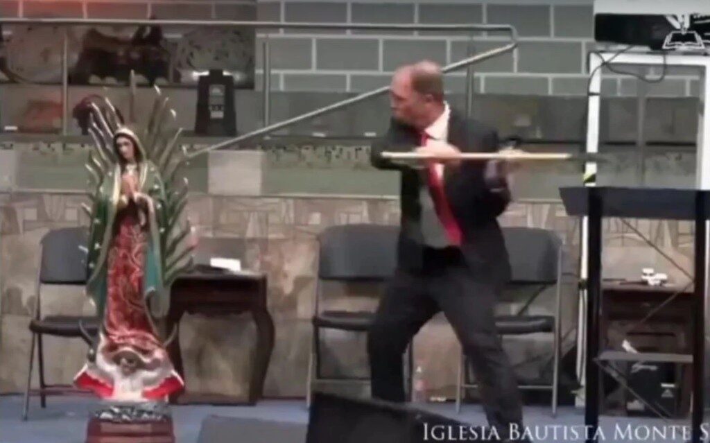Um pastor da Igreja Batista Monte Sión, localizada no estado de Tamaulipas, no México, viralizou nesta segunda-feira (08), após destruir a machadadas a imagem de Virgem de Guadalupe, padroeira do país para os católicos.