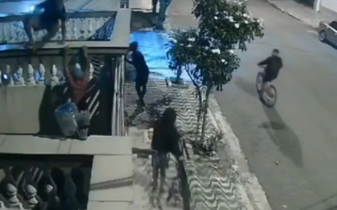 Uma câmera de segurança flagrou o momento em que os menores chegam ao local, alguns em bicicletas, e começam a escalar o muro do condomínio. Eles entram e descem em direção ao estacionamento.