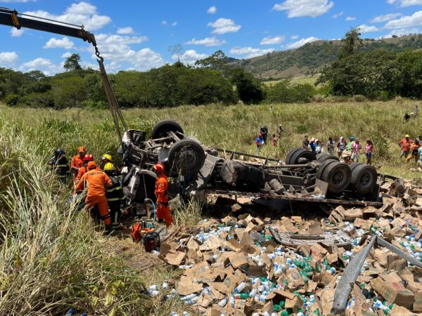 Passageiro morre após tombamento de caminhão; pai e filho sobreviveram