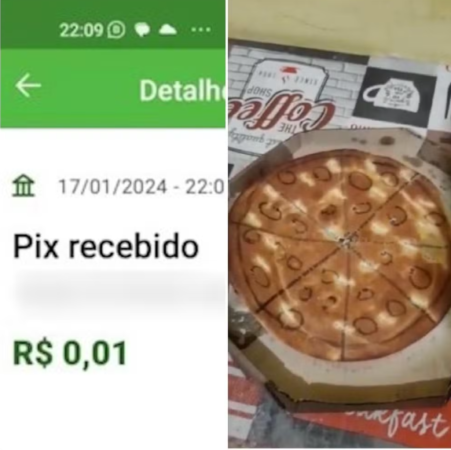 O dono de uma pizzaria resolveu enviar uma pizza de papelão a um cliente que fez um comprovante de Pix falso. Na hora do pedido, o proprietário percebeu que na conta do estabelecimento havia entrado o apenas R$ 0,01, e não os R$ 74,90 que estavam no comprovante falso. Por isso, ele resolveu se ‘vingar’ do cliente.