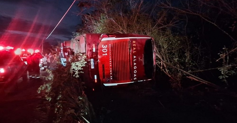 Um ônibus da empresa Real Alagoas tombou e deixou, ao menos, quatro pessoas feridas, no km 37 da BR-101, em Joaquim Gomes, Alagoas, na madrugada deste sábado (17).