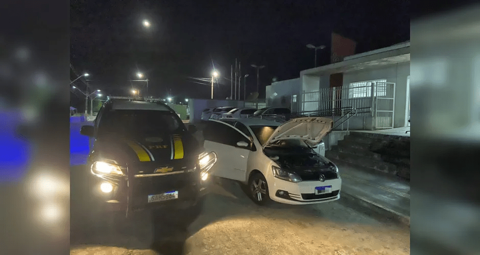 Por volta das 21h30, uma equipe da PRF realizou uma abordagem ao veículo e, após uma fiscalização minuciosa, constatou indícios de adulteração nos sinais identificadores do automóvel.