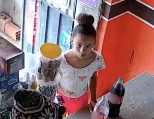 Uma câmera de monitoramento registrou a menina usando o cartão da mãe para comprar a bebida. Ela sai do estabelecimento às 11h12. Esse é o último registro dela com vida.