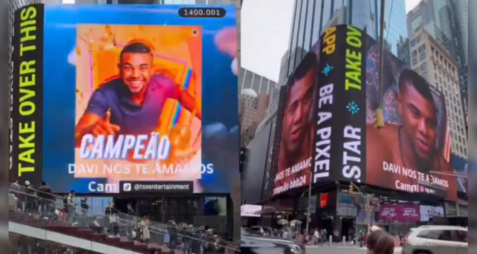 Nesta segunda-feira (22), o perfil oficial de Davi Brito compartilhou que o campeão do BBB 24 recebeu uma homenagem na Times Square, em Nova York, nos Estados Unidos.