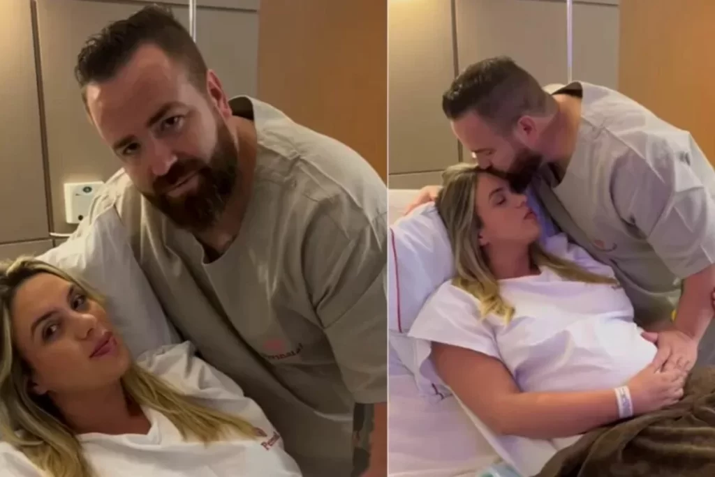O engenheiro compartilhou um vídeo ao lado de sua companheira, a médica Larysse Ribeiro, de 28 anos, momentos antes do parto, Larysse aparece em um quarto de maternidade