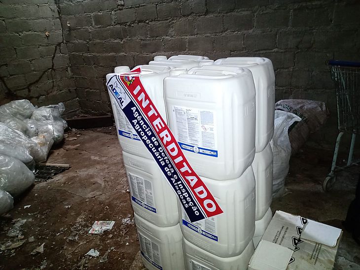 As irregularidades – Pela Adeal, houve autuação de nove estabelecimentos que comercializavam irregularmente produtos perigosos. As irregularidades encontradas foram falta de autorização legal para comércio de agrotóxico (registro na agência), fracionamento em garrafas pets, armazenamento em desacordo com a legislação e produto vencido. Por essa razão, houve a interdição dos agrotóxicos, o que significa a proibição de os estabelecimentos venderem os produtos interditados até regularizarem o comércio.