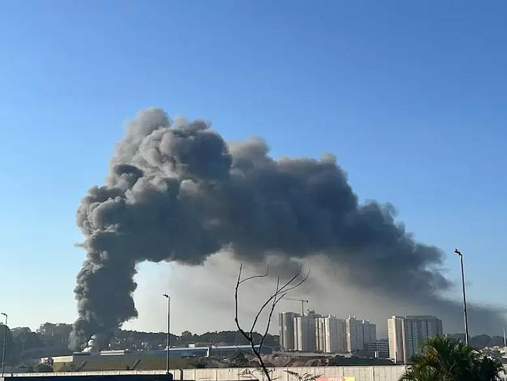 Causa do fogo ainda não foi identificada pelas equipes. O galpão fica em uma área residencial do bairro, ao lado de casas. Ao UOL, a Defesa Civil informou que acompanha o caso.