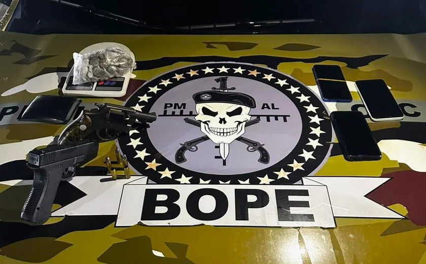 Uma equipe do Batalhão de Operações Policiais Especiais (Bope) apreendeu um revólver, um simulacro de arma de fogo e 90 gramas de maconha em uma ocorrência registrada na última quinta-feira (02), no bairro Tabuleiro dos Martins, em Maceió.