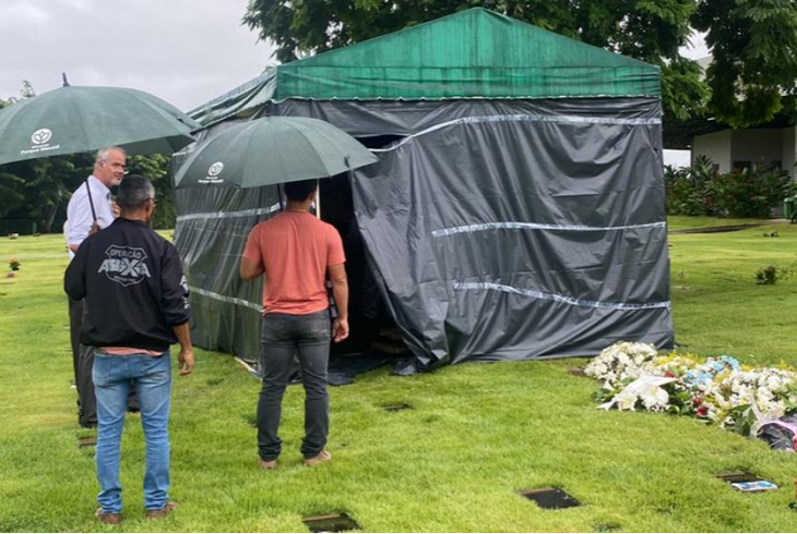 Nesta manhã, o delegado Arthur César, da Delegacia de Homicídios e Proteção à Pessoa (DHPP), acompanhou a exumação dos corpos, realizada pela Polícia Científica. Ele é o responsável pelos inquéritos e informou que vai aguardar os laudos técnicos para concluir as investigações.