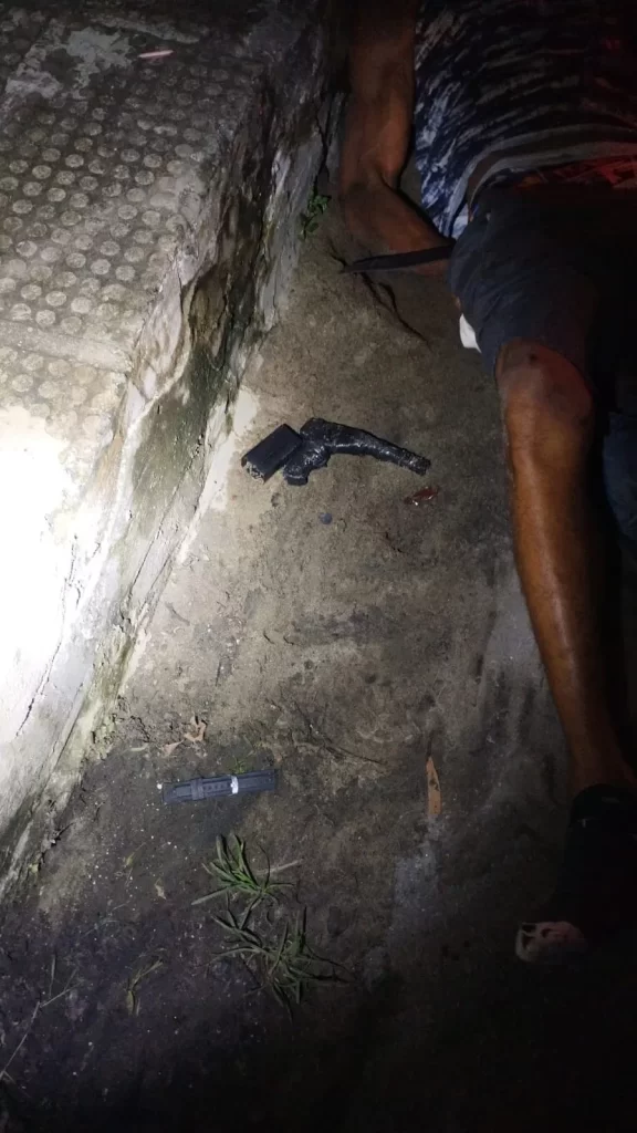 A ocorrência foi, inicialmente, atendida por militares da Força Tarefa, que posteriormente solicitaram apoio da Oplit, uma vez que os populares estavam bastante revoltados. Com o suspeito, que chegou a desmaiar após a agressão, os militares encontraram o celular da vítima, que não quis formalizar o boletim de ocorrência, e o simulacro.