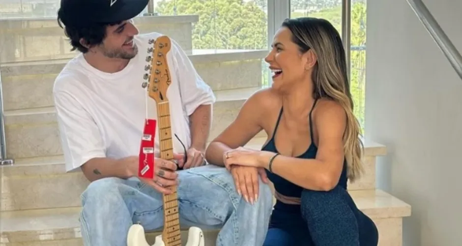 Deolane se declara a Fiuk e presenteia cantor com guitarra