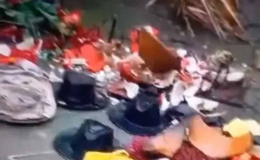 “Peste de macumba. Quem acredita em Deus quer saber de macumba?”, fala o suspeito no vídeo ao chutar e danificar objetos de suposta manifestação religiosa. Outro homem que estava gravando o vídeo fala rindo: “Rapaz, Cleiton, não mexe com isso!”.
