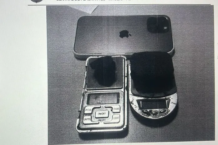 Na abordagem, os policiais encontraram com ele cerca de 60 gramas de uma substância verde análoga a haxixe, duas balanças de precisão e um Iphone.