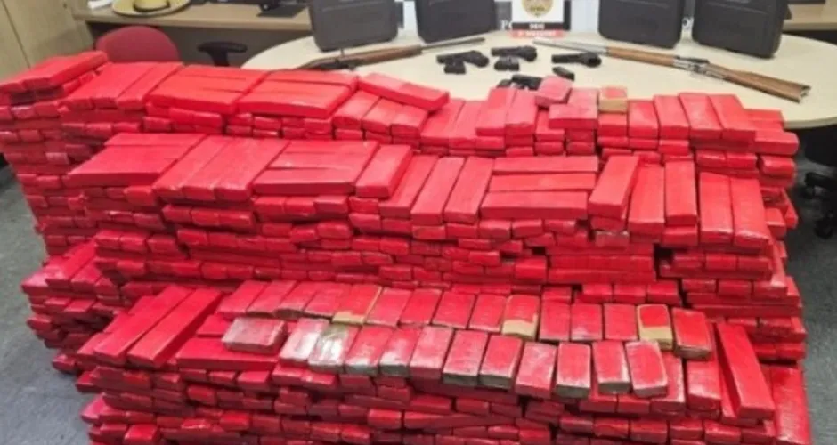 Além do entorpecente, quatro pistolas, duas espingardas e um veículo também foram apreendidos na ação.