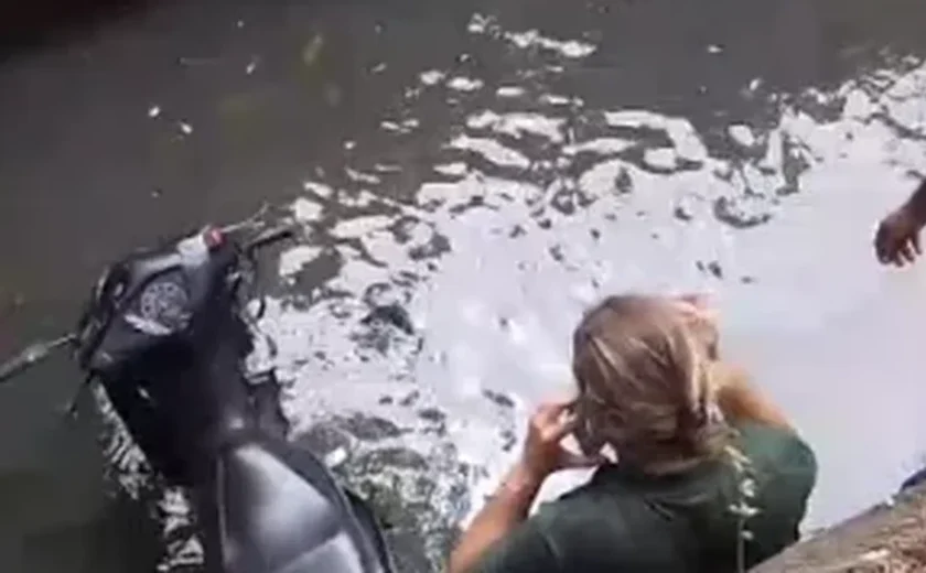 Nesta quarta-feira (17) uma mulher ficou ferida após perder o controle da motocicleta e cair no Riacho salgadinho, em Maceió.