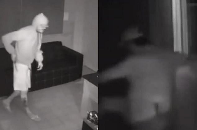 Nas imagens, é possível ver um dos suspeitos mudando a direção de uma das câmeras de segurança e a coloca virada para a parede. Já em outro vídeo, o outro suspeito arrombando uma porta e invadindo uma das salas.