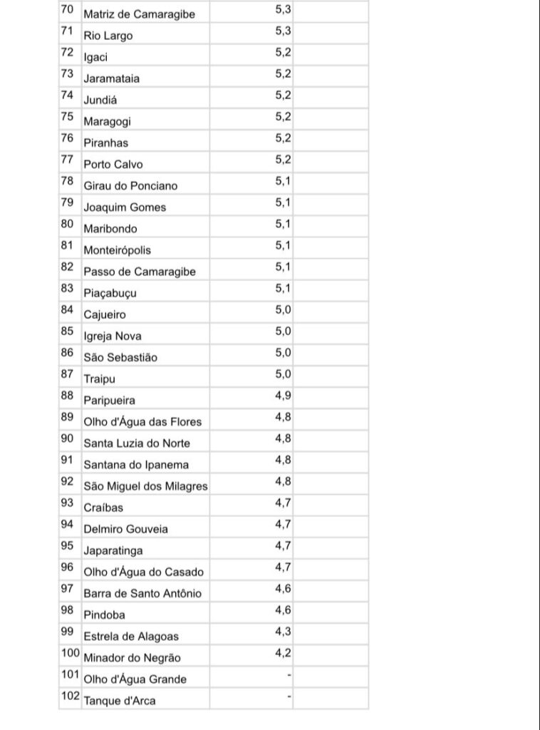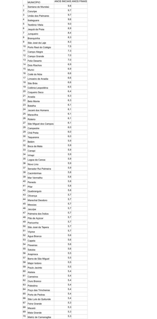O estado e a grande maioria dos municípios alagoanos seguiram avançando e bateram as metas estabelecidas pelo governo federal