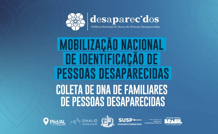 Mobilizar órgãos e pessoas na tentativa de salvar a vida de outras que, por motivos bem particulares, psicológicos ou não, desapareceram. De 26 a 30 de agosto de 2024 acontecerá em todo Brasil, por iniciativa do Ministério da Justiça, uma força-tarefa para a coleta de DNA que resultará em comparação do material genético com pessoas desaparecidas, o que reacende a esperança para centenas de famílias. E o Programa de Localização e Identificação de Desaparecidos (PLID/AL), do Ministério Público de Alagoas (MPAL) mais uma vez é apoiador desse esforço coletivo, unindo-se à Polícia Científica que é a responsável pela execução no estado, sob a coordenação da autoridade central da política nacional de busca de desaparecidos em Alagoas, delegada Rosimeire Vieira, na tentativa de transformar essa triste realidade. Razão pela qual convida o cidadão alagoano que tem parentes desaparecidos a participar desse momento que poderá ser crucial no desfecho dos casos.