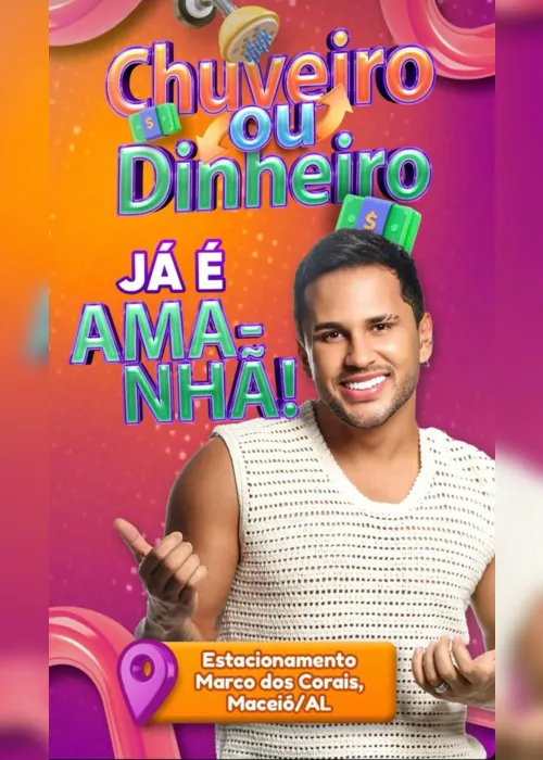 Neste domingo (25), vai ocorrer a 5ª edição do quadro “Chuveiro ou Dinheiro” do influenciador Lucas Guimarães. O evento vai acontecer no Marco dos Corais, na Ponta Verde, em Maceió, a partir das 14h e vai contar com a presença do cantor Nattanzinho.