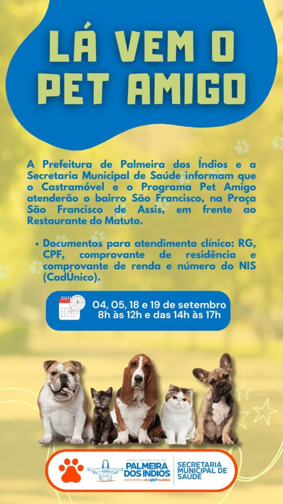 O Pet Amigo/Castramóvel atenderá o bairro São Francisco a partir do dia 04/9