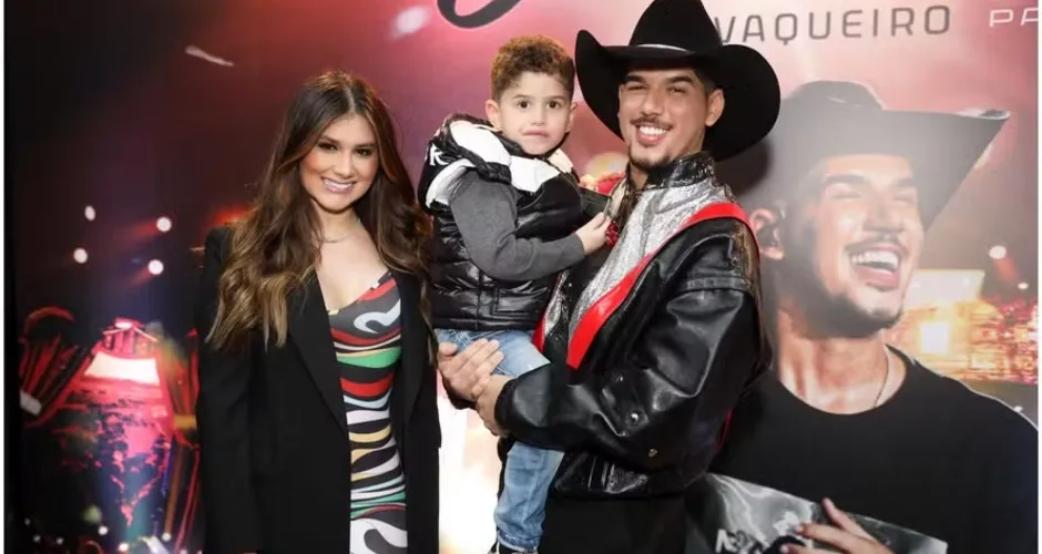 Zé Vaqueiro recebe o carinho de esposa e filho em evento em SP