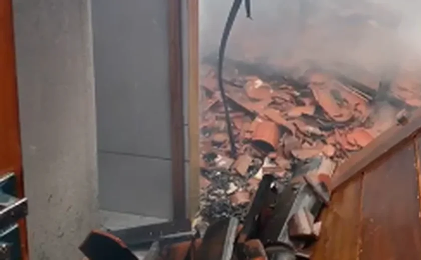 Devido ao fogo, o telhado do imóvel desabou e os móveis ficaram destruídos.