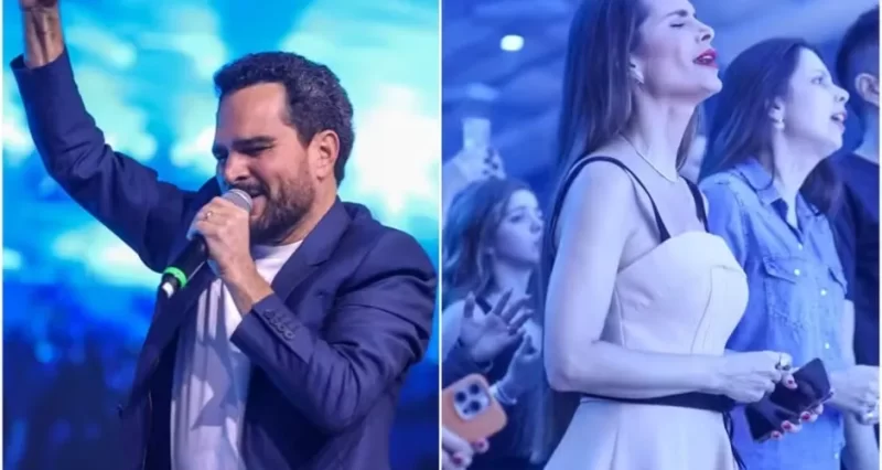 Luciano faz primeiro show gospel no Rio com presença da esposa