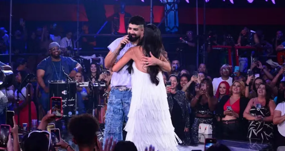 Beatriz Ferraz troca carinhos com Dilsinho no palco