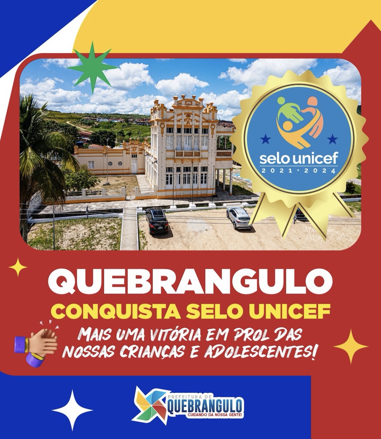 Prefeito de Quebrangulo, Marcelo Lima (MDB), usou as redes sociais para comemorar o selo do Fundo das Nações Unidas para a Infância no Brasil (UNICEF) e anunciar que seu município se destaca entre os 56 de Alagoas que mais melhoraram suas políticas públicas voltadas para crianças e adolescentes entre 2021 e 2024.