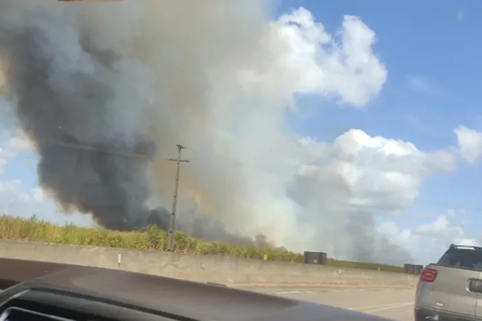 Um incêndio de grandes proporções em canaviais provocou uma espessa fumaça que cobriu parte de Arapiraca, na tarde desta sexta-feira (13). O céu escurecido e o forte cheiro foi percebido por moradores de vários bairros da cidade e teve início nas proximidades do povoado São José, em Lagoa da Canoa, agreste do Estado.