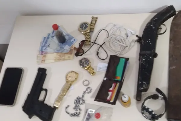 Com o grupo, os policiais apreenderam diversos itens roubados, incluindo relógios, celulares e dinheiro. As armas utilizadas nos crimes – uma arma de fogo, uma arma falsa e um facão – também foram recolhidas.