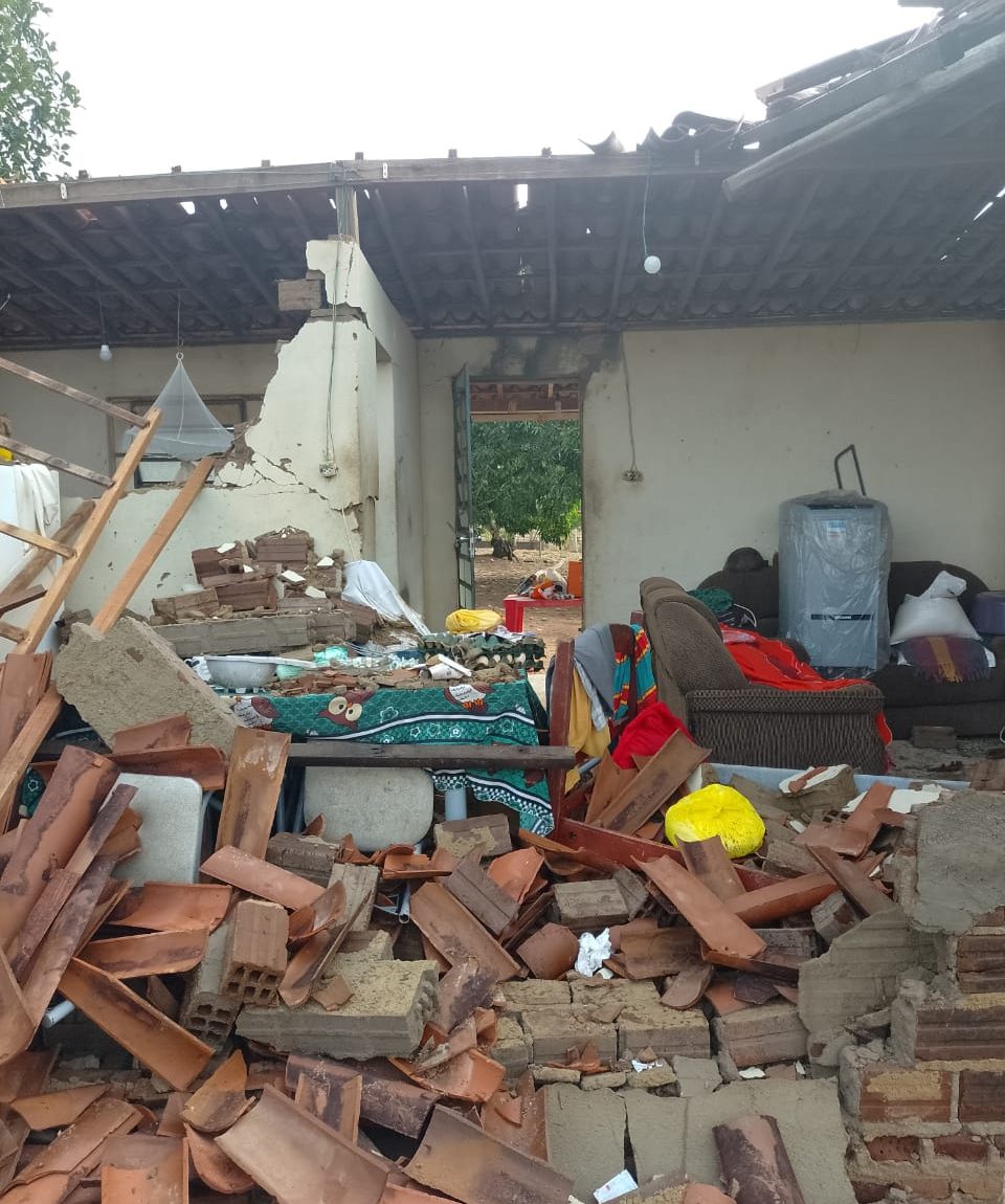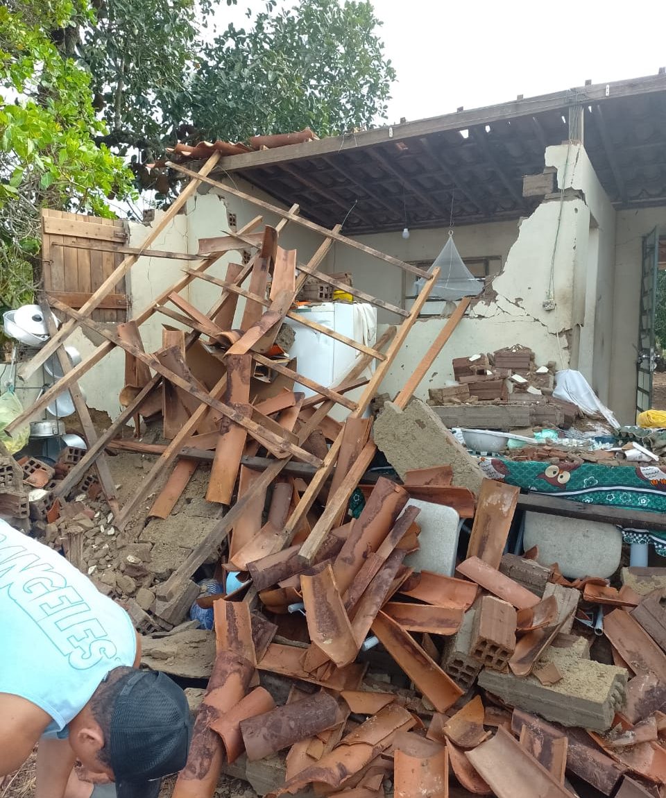 Além da estrutura da residência, pelo fato das telhas terem sido arrancadas, os móveis e eletrodomésticos ficaram cobertos por destroços do telhado.
