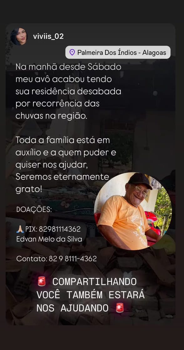 Nesta Matéria a TV Estadão Alagoas se solidariza com a família afetada e disponibiliza o PIX para ajuda. 82 98111-4362 Edvan Melo da Silva.