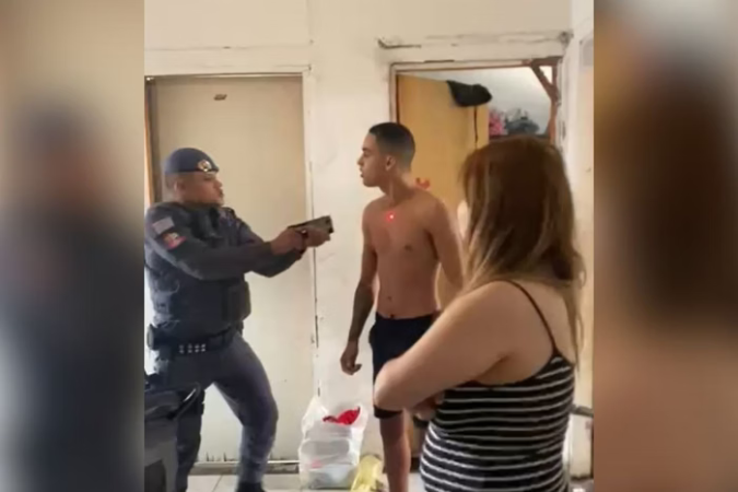 O morador, que estava na casa com a família, começou a discutir com o PM, que pedia respeito. O rapaz, então, disse “você fala de respeito, mas você está respeitando minha casa? Tá fazendo o que aqui, tio?”.