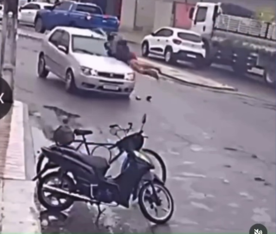 As imagens mostram o momento em que um veículo modelo Palio, de cor prata, trafegava pela via principal, quando atingiu dois pedestres que atravessavam a rua em um trecho sem faixa de pedestres. Um dos atingidos conseguiu se levantar mancando, mas a outra vítima, uma mulher de 49 anos, permaneceu caída no asfalto, com sinais de dor.