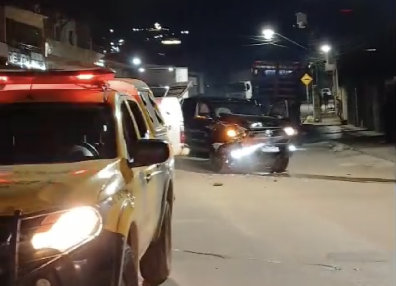 Policiais militares realizavam revistas em um bar nas proximidades do conhecido ponto de referência “Zé Borracheiro”, quando uma caminhonete Hilux acabou colidindo contra a viatura que estava estacionada no local da abordagem.
