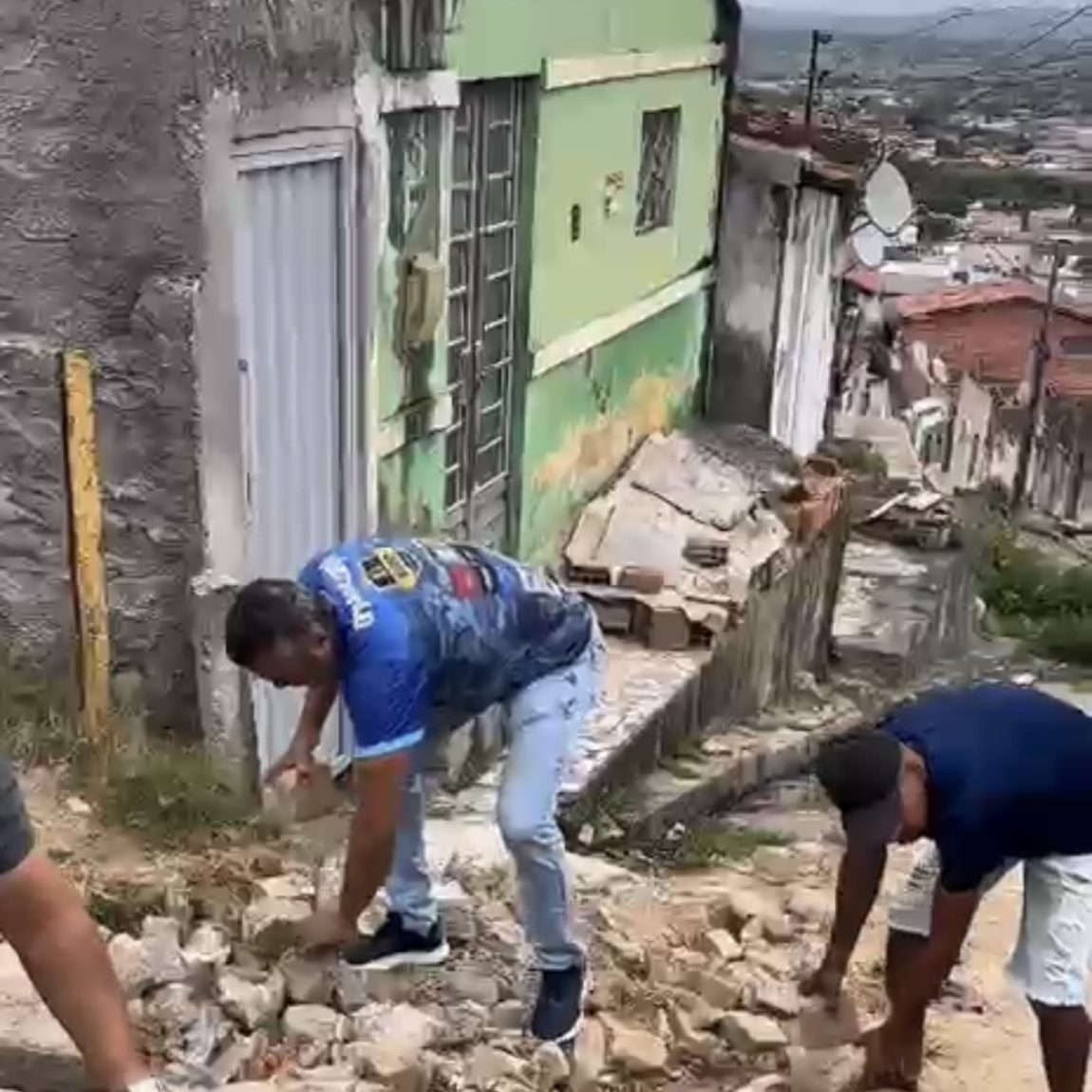Cansados de esperar por ações do poder público, os moradores do bairro Alto do Cruzeiro decidiram agir. Com apoio do vereador Kall Mello, filho do bairro, a comunidade liderou neste fim de semana a chamada “Operação Tapa-Buracos” na rua São Miguel. A obra, realizada com recursos próprios, contou com o empenho direto do vereador e dos moradores, que literalmente colocaram a mão na massa.