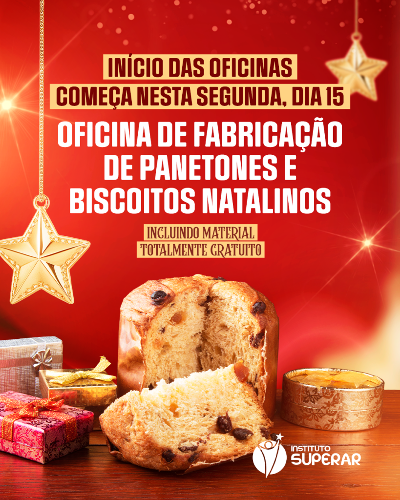 O Instituto Superar realiza, entre os dias 15 e 19 de dezembro, a Oficina de Fabricação de Panetone, uma iniciativa voltada à capacitação profissional e à geração de renda para moradores de Palmeira dos Índios. A ação integra o conjunto de projetos sociais desenvolvidos pela instituição e reafirma seu compromisso com a inclusão social e o fortalecimento da autonomia econômica das famílias do município.
