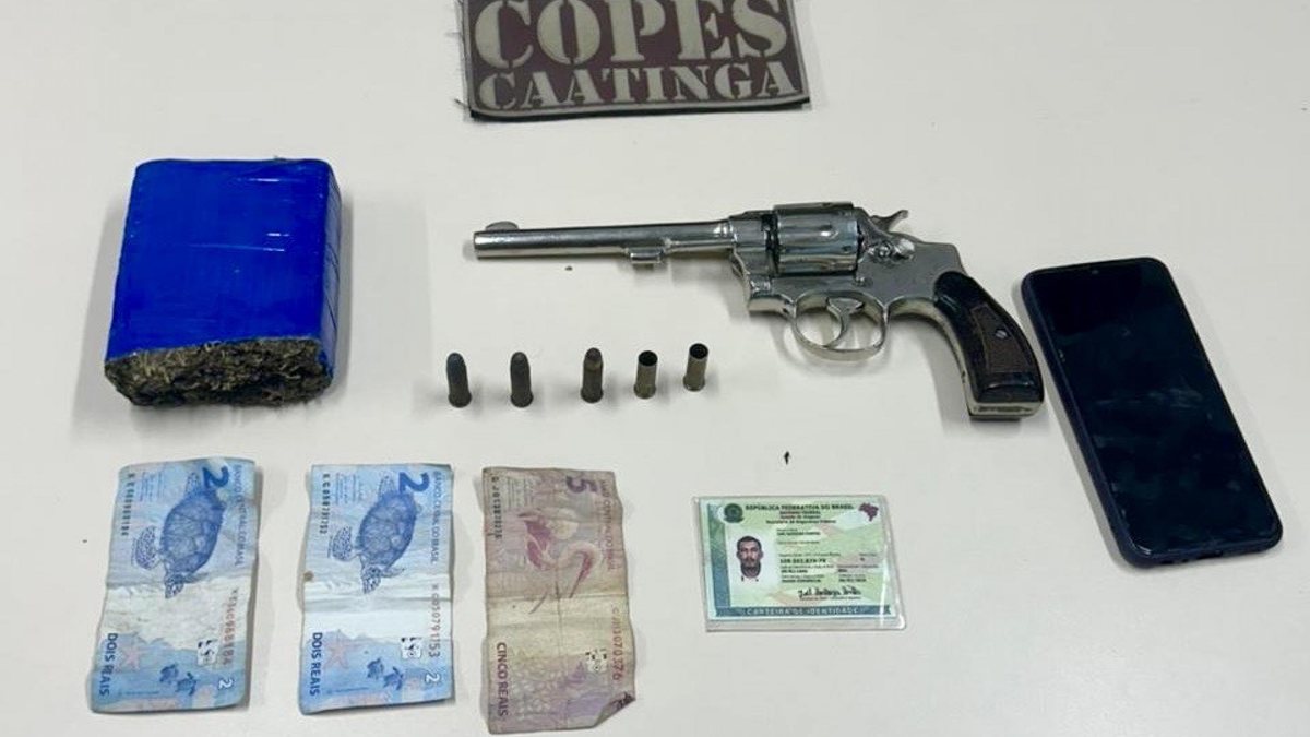 No local, foram apreendidos um revólver de calibre 38, munições, 370 gramas de maconha, dinheiro em espécie e um aparelho celular. A mulher recebeu voz de prisão e foi encaminhada para o Centro Integrado de Segurança Pública (Cisp) de Batalha.