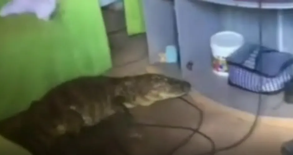 Segundo relatos, o réptil foi avistado inicialmente pelos próprios moradores, que ficaram impressionados com a presença inesperada do animal no interior do imóvel.