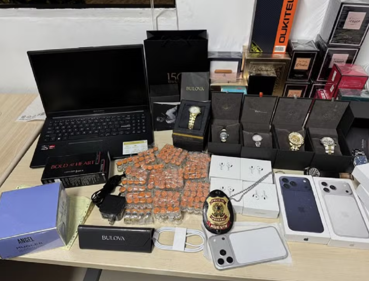 De acordo com a PF, o suspeito também estava com perfumes, relógios, celulares e smartwatches, e que todos os produtos foram adquiridos no Paraguai.