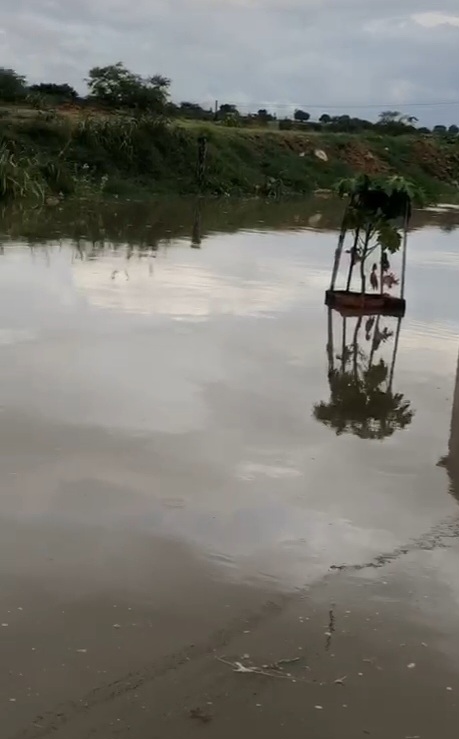 Imagens enviadas à redação mostram ruas e residências invadidas pela água, evidenciando problemas de drenagem e infraestrutura. No Conjunto Jota Duarte, um morador denunciou as condições precárias das vias, classificando o cenário como “Piscinão de Ramos”, em referência uma praia artificial de água salgada, inaugurada em 2001 na Zona Norte do Rio de Janeiro, e cobrando providências urgentes.